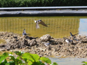 Foto0733+0735+5607: Die Schwalben fühlen sich auf dem Garagendach wohl und finden dort genug zum Bauen ihrer Nester