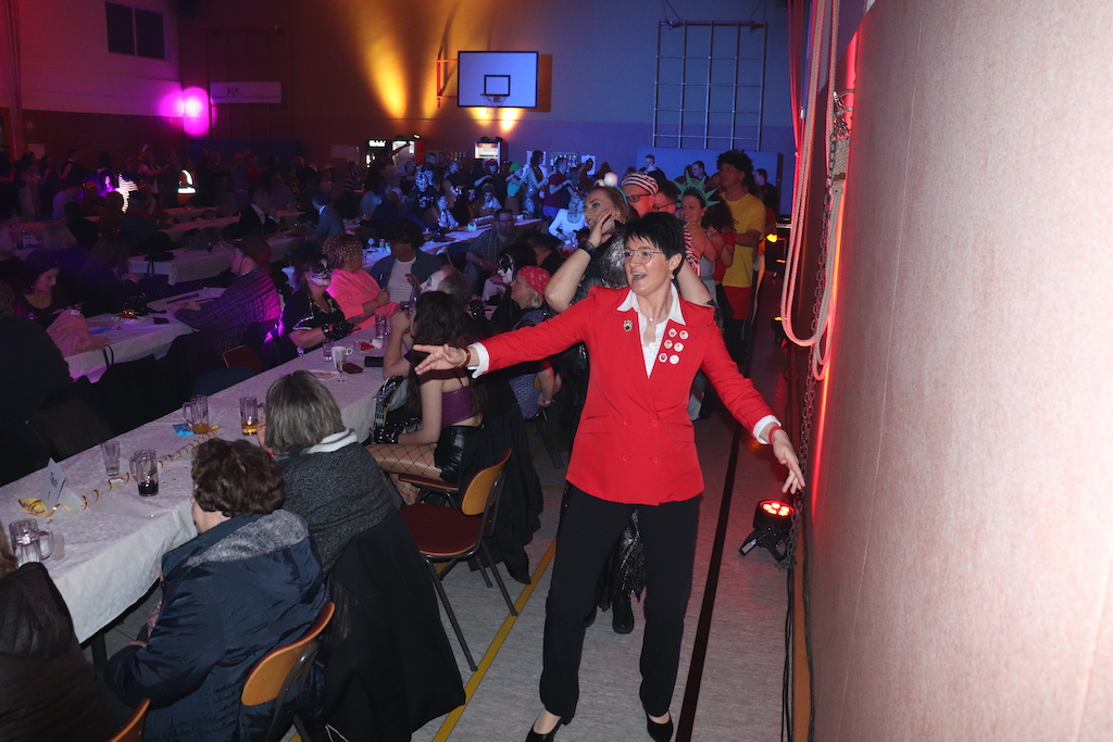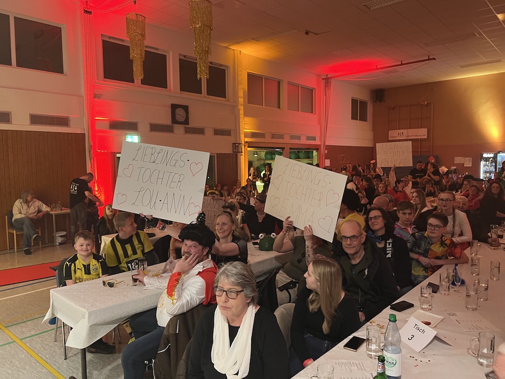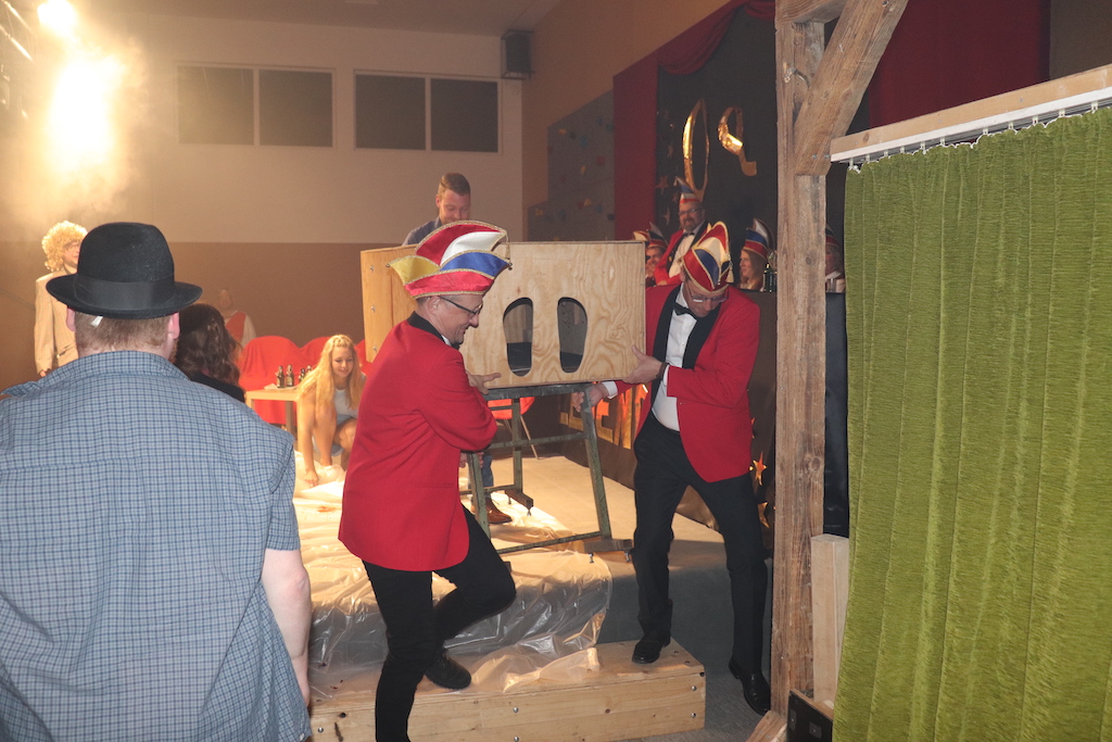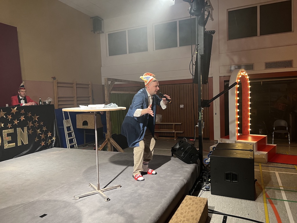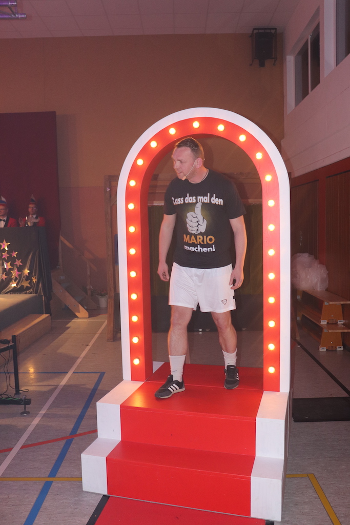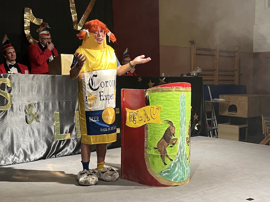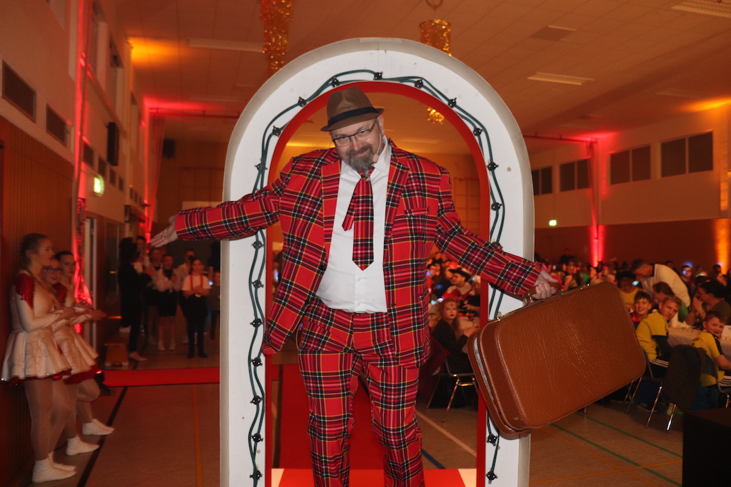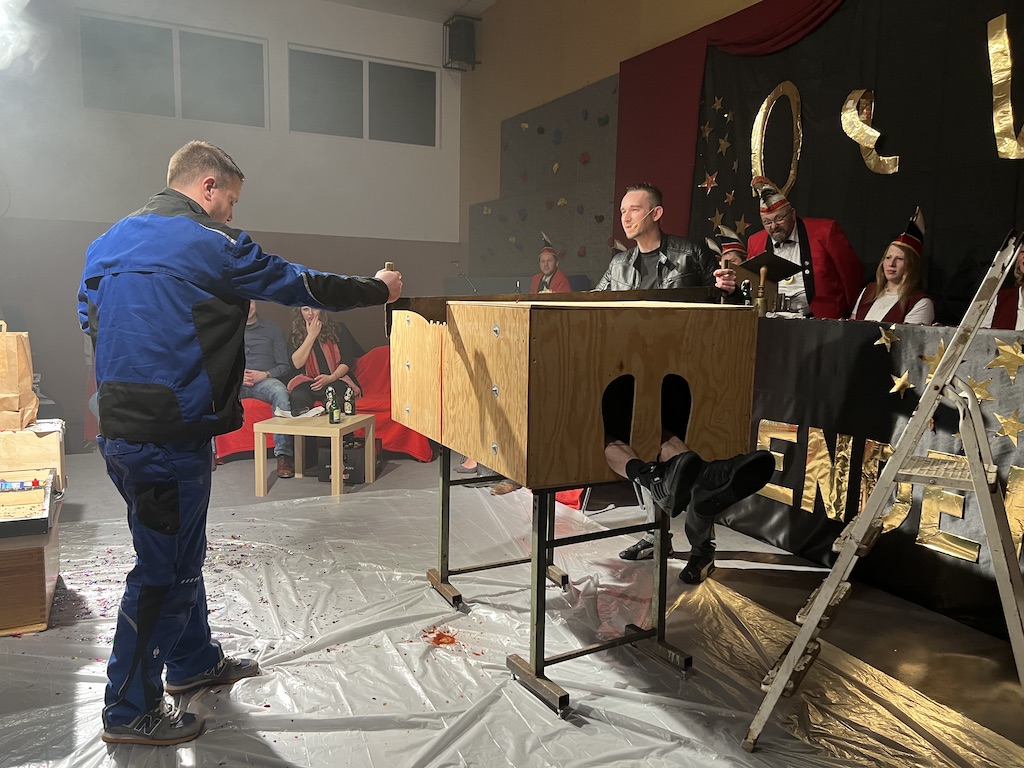 Beim Programm war dieses Jahr auch wieder den OCV-Minis der Start vorbehalten, die im gleißenden Scheinwerferlicht der Bühne eine hervorragende Rolle spielten. Die Minis waren dann auch der passende Anheizer für die Ehrenpräsidentengarde, die Ehrenpräsident Jürgen Spörhase dann auch selber ansagen durfte. Wie das Loch in den Käse gehört zum Karneval aber auch die Büttenrede, die Hampi Dreier wieder selber übernahm und dabei zur Freude der Besucher wieder so manchen aufs Korn nahm. Komödiantischer Höhepunkt des Abends waren aber wieder die Jatibo’s, wo zahlreiche Stars und Legenden auf dem Sofa von Thomas Gottschalk und Michelle Hunziker bei „Wetten Dass“ Platznahmen. Dort wollte Bud Spencer „so manchen Scheitel ziehen“, Terence Hill warb für Maggi, Marianne Rosenberg gehörte wieder zu ihm, die Ehrlich Brothers verzweifelten an der Sägenummer, Werner fand das Schnüffelstück, Mario Basler bewies seine gute Nase beim Alkohol-Tasting und Otto sorgte nicht nur auf der Bühne für gute Laune. Besonders lautstark wurde es aber auch bei den OCV-Kids, als die „peinlichen“, aber stolzen Eltern ihre Anfeuerungsschilder rausholten. Stammgast ist mittlerweile auch Büttenredner Josef Wirth, der natürlich Corona ordentlich auf die Schippe nahm.