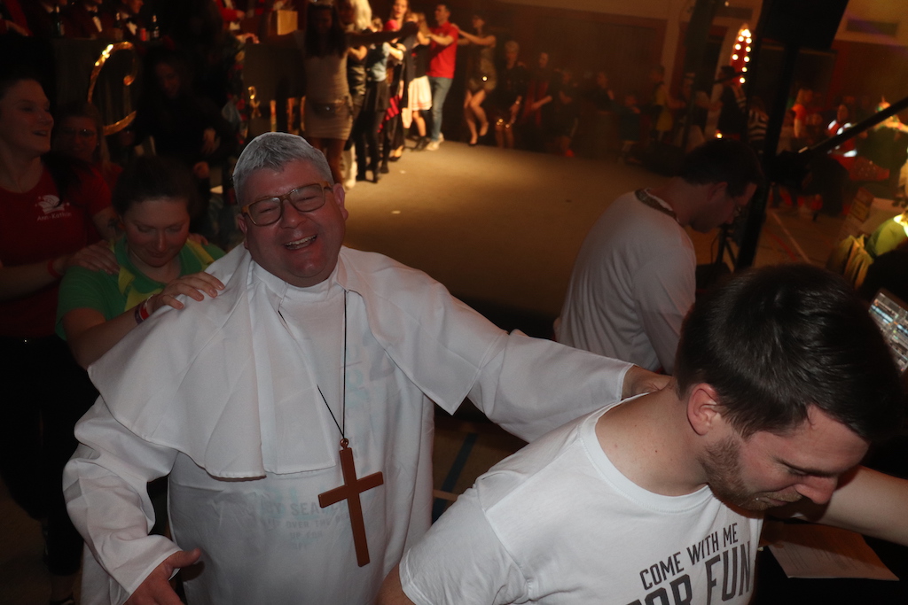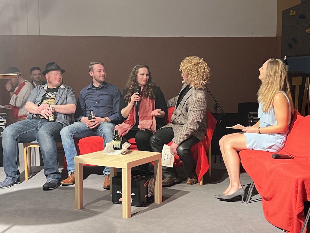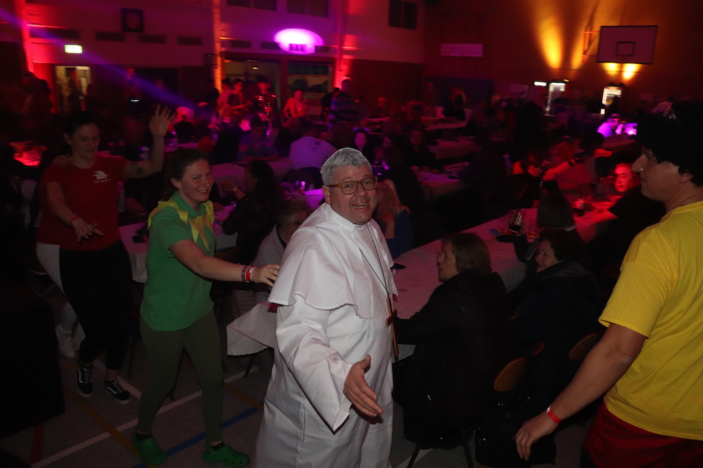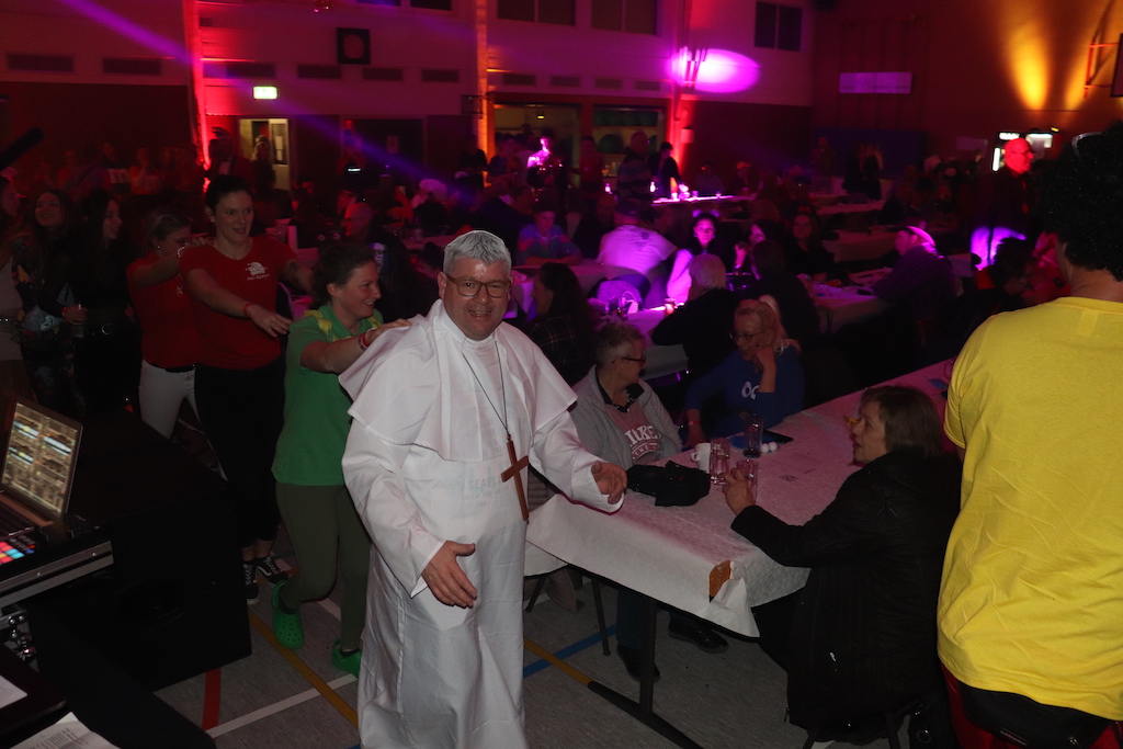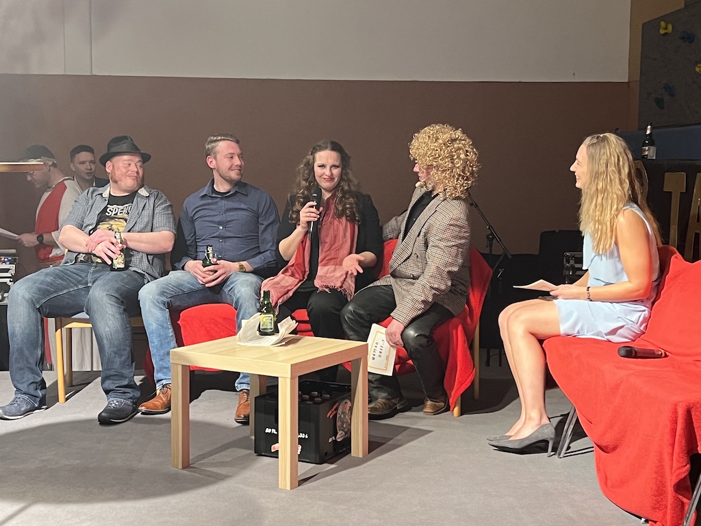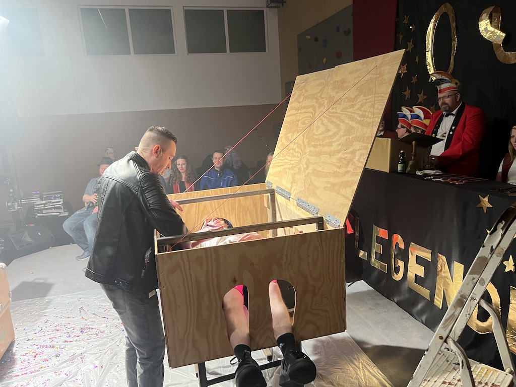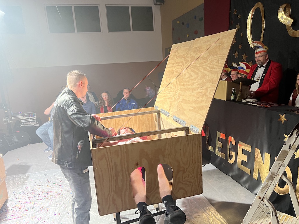 Beim Programm war dieses Jahr auch wieder den OCV-Minis der Start vorbehalten, die im gleißenden Scheinwerferlicht der Bühne eine hervorragende Rolle spielten. Die Minis waren dann auch der passende Anheizer für die Ehrenpräsidentengarde, die Ehrenpräsident Jürgen Spörhase dann auch selber ansagen durfte. Wie das Loch in den Käse gehört zum Karneval aber auch die Büttenrede, die Hampi Dreier wieder selber übernahm und dabei zur Freude der Besucher wieder so manchen aufs Korn nahm. Komödiantischer Höhepunkt des Abends waren aber wieder die Jatibo’s, wo zahlreiche Stars und Legenden auf dem Sofa von Thomas Gottschalk und Michelle Hunziker bei „Wetten Dass“ Platznahmen. Dort wollte Bud Spencer „so manchen Scheitel ziehen“, Terence Hill warb für Maggi, Marianne Rosenberg gehörte wieder zu ihm, die Ehrlich Brothers verzweifelten an der Sägenummer, Werner fand das Schnüffelstück, Mario Basler bewies seine gute Nase beim Alkohol-Tasting und Otto sorgte nicht nur auf der Bühne für gute Laune. Besonders lautstark wurde es aber auch bei den OCV-Kids, als die „peinlichen“, aber stolzen Eltern ihre Anfeuerungsschilder rausholten. Stammgast ist mittlerweile auch Büttenredner Josef Wirth, der natürlich Corona ordentlich auf die Schippe nahm.