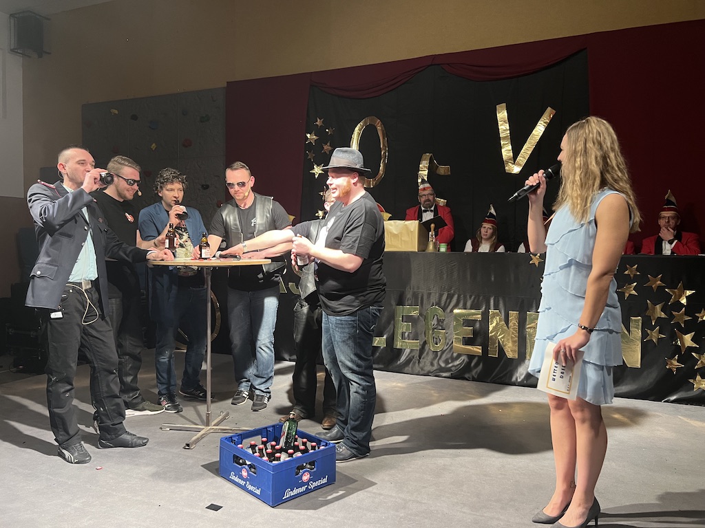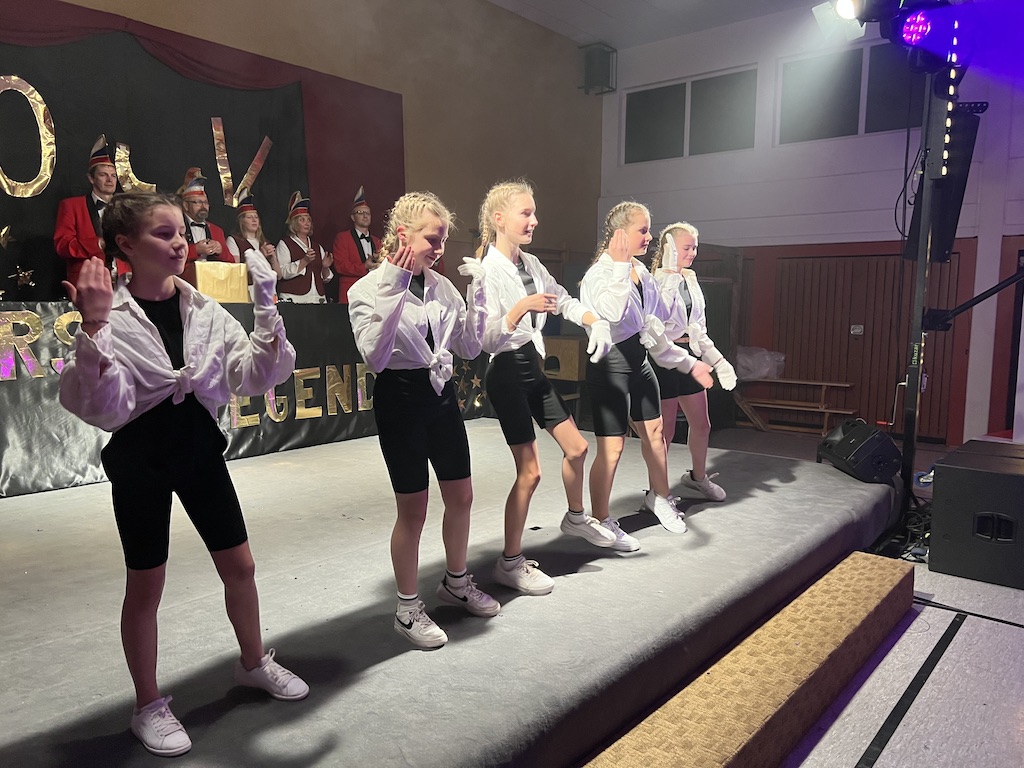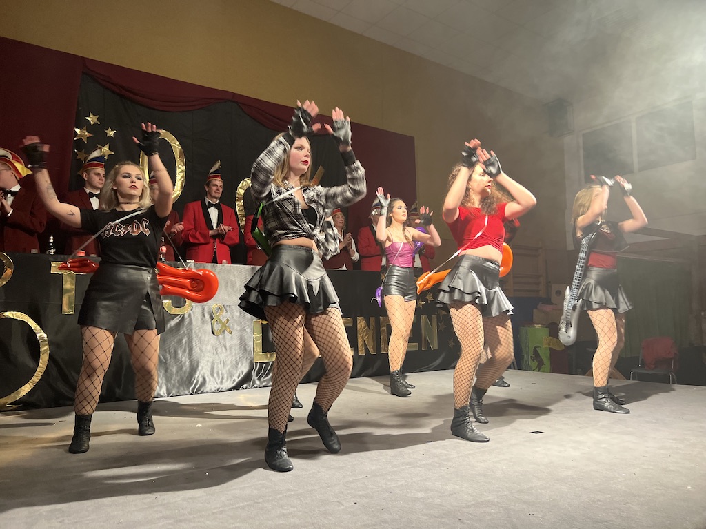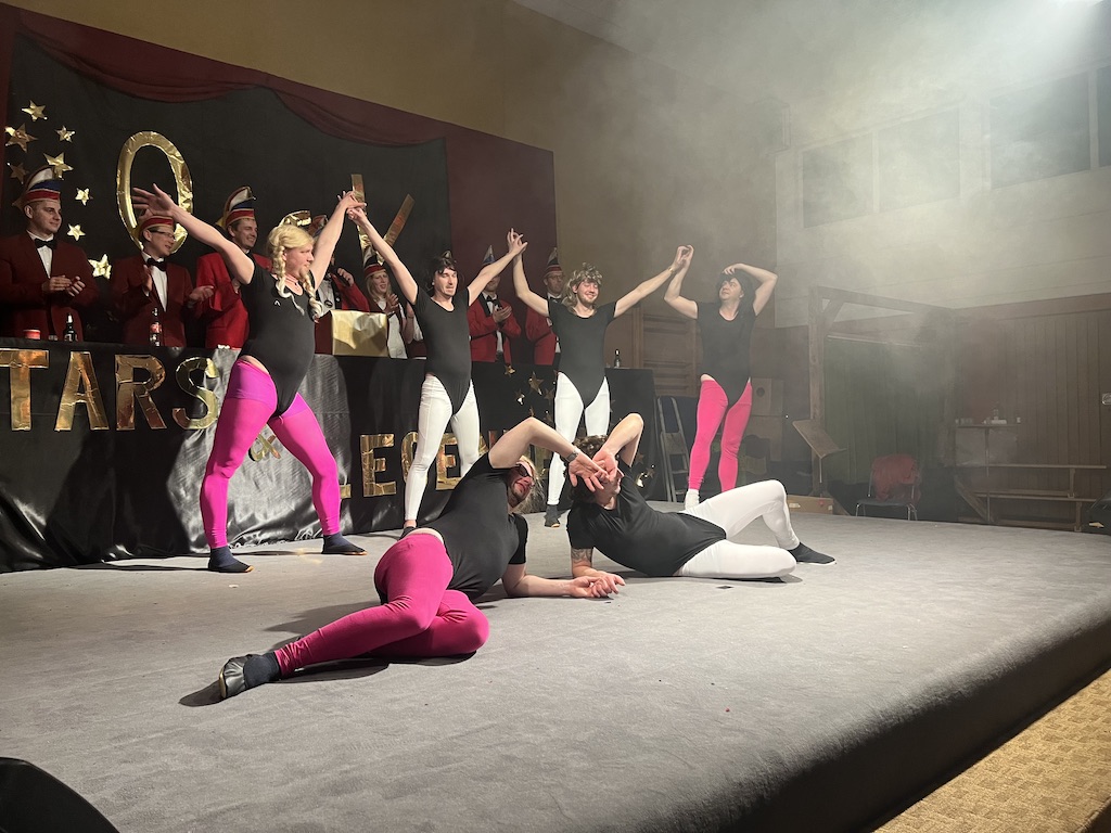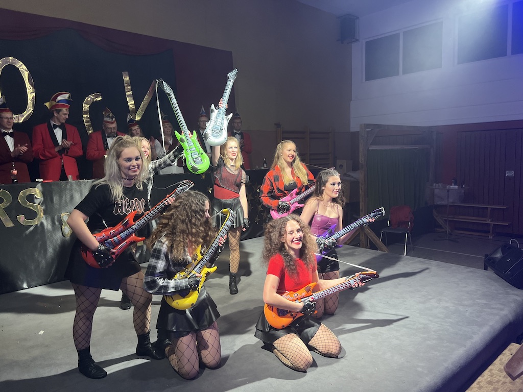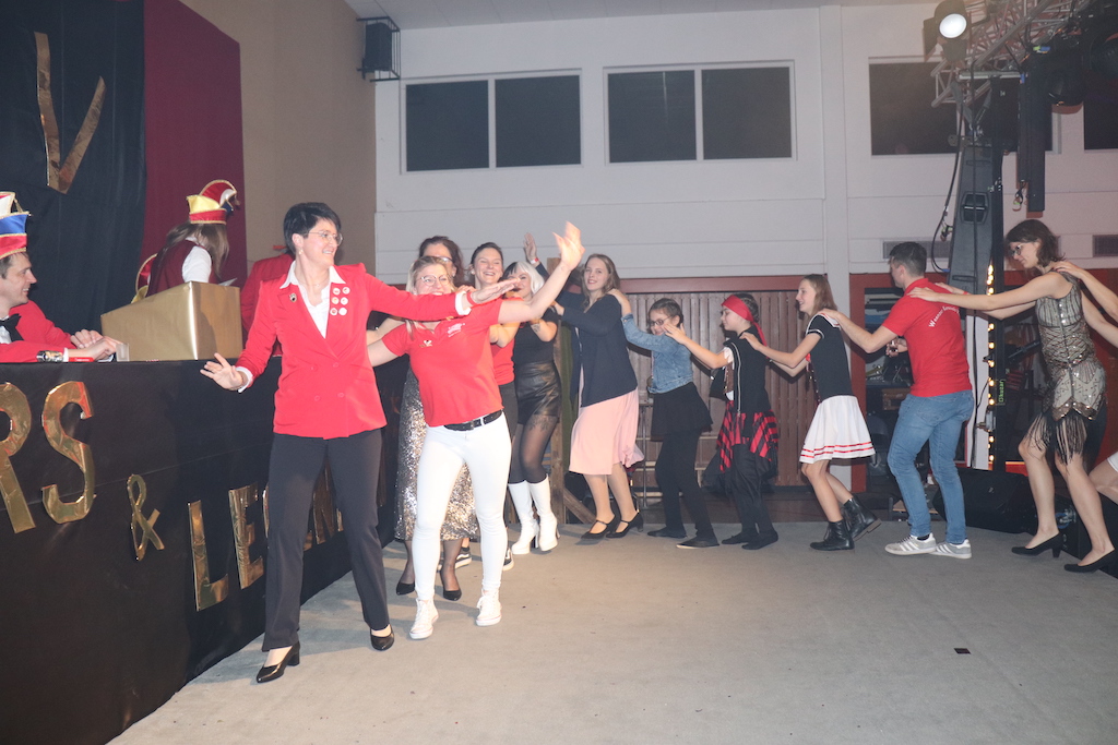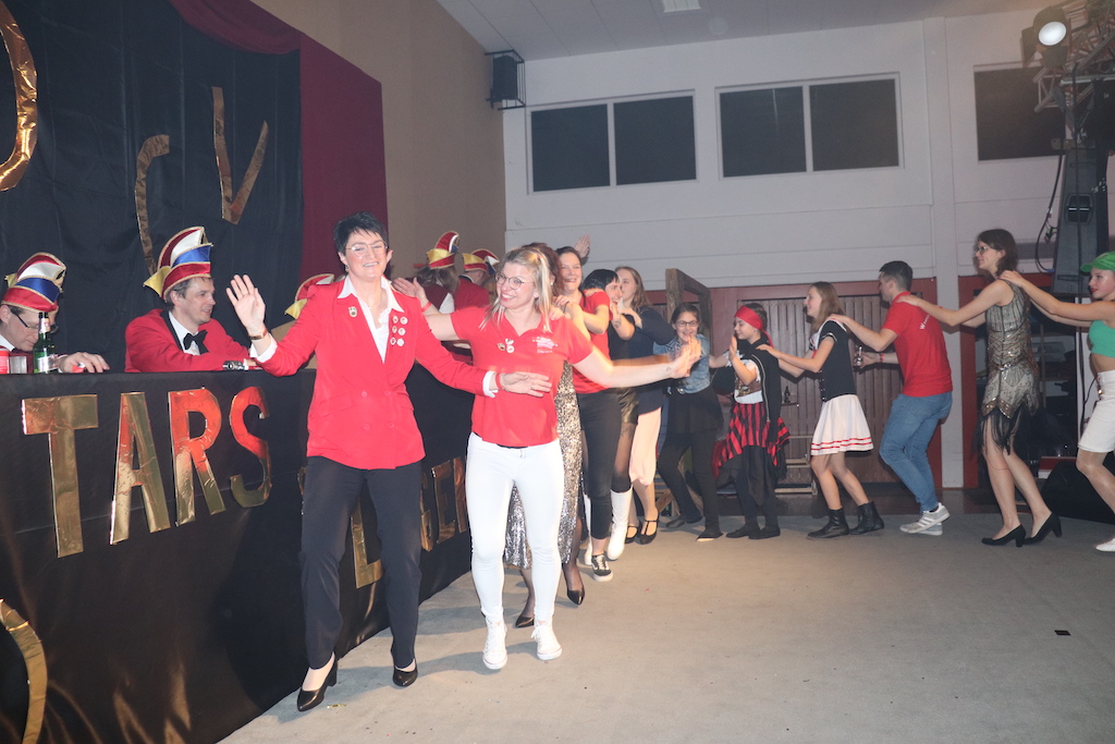 Nichts verlernt in der Pandemie hat die „Garde rot-weiß“, die dort sogar Zuwachs bekommen hat. Unter lautstarkem Jubel zeigte der Gardenachwuchs, dass der OCV für die nächsten Jahre bei den Tanzdarbietungen der Erwachsenen sehr gut aufgestellt sein wird. Direkt nach der abschließenden Pyramide forderten die begeisterten Zuschauer sofort eine Zugabe, die sie natürlich auch bekamen. Im zweiten Teil ihres Auftritts erinnerten die Jatibo’s mit ihrer Hommage an die Rosaroten Panther an längst vergessene Zeiten und wahre Legenden des Ockenser Carnevalvereins. Der Auftritt der Jatibo’s bedeutete aber noch nicht das Ende des Abends. Zum Abschluss sorgte die OCV-Showtanztruppe mit einem Rock-Medley für Jubelstürme in der ganzen Halle. Das OCV-Männerballett und das Finale mit allen Beteiligten auf der Bühne sorgte schließlich für den passenden Abschluss eines unvergesslichen Abends voller Stars und Legenden.
