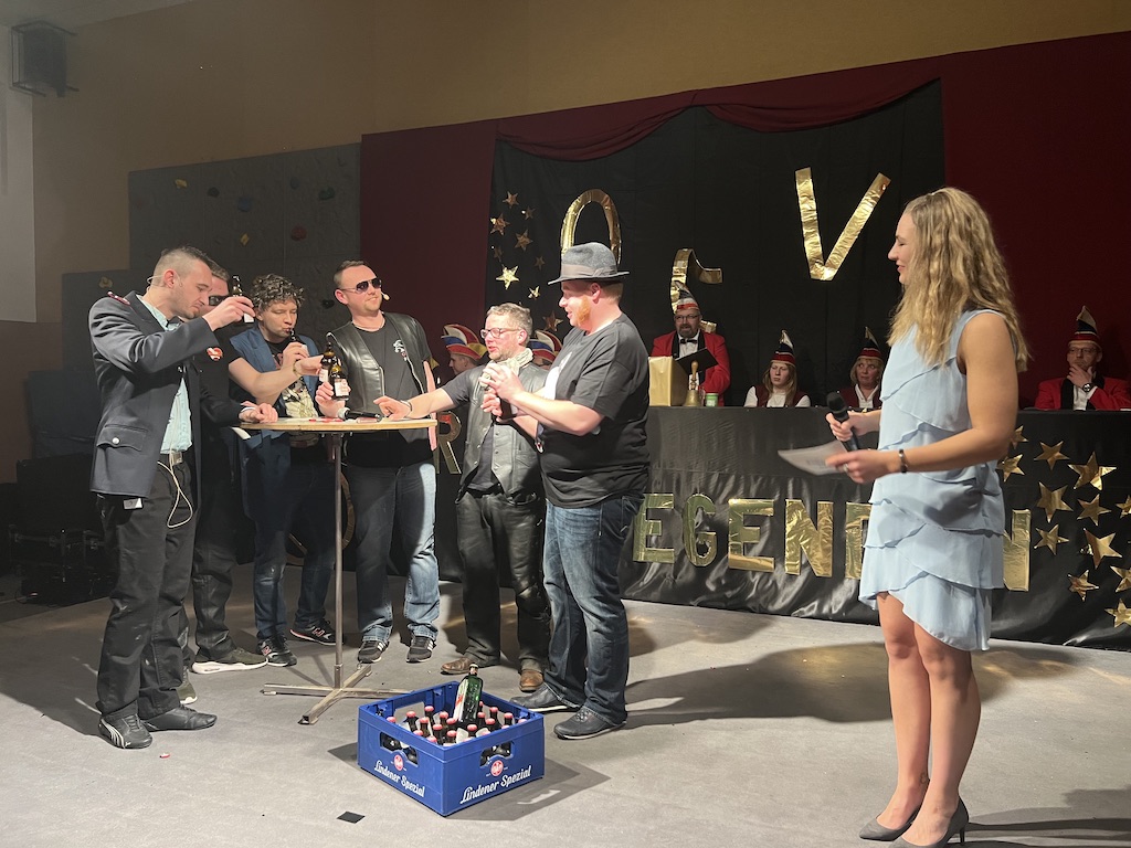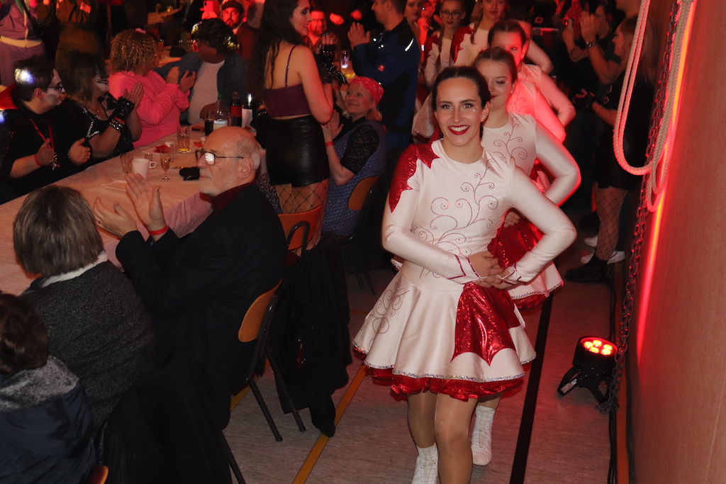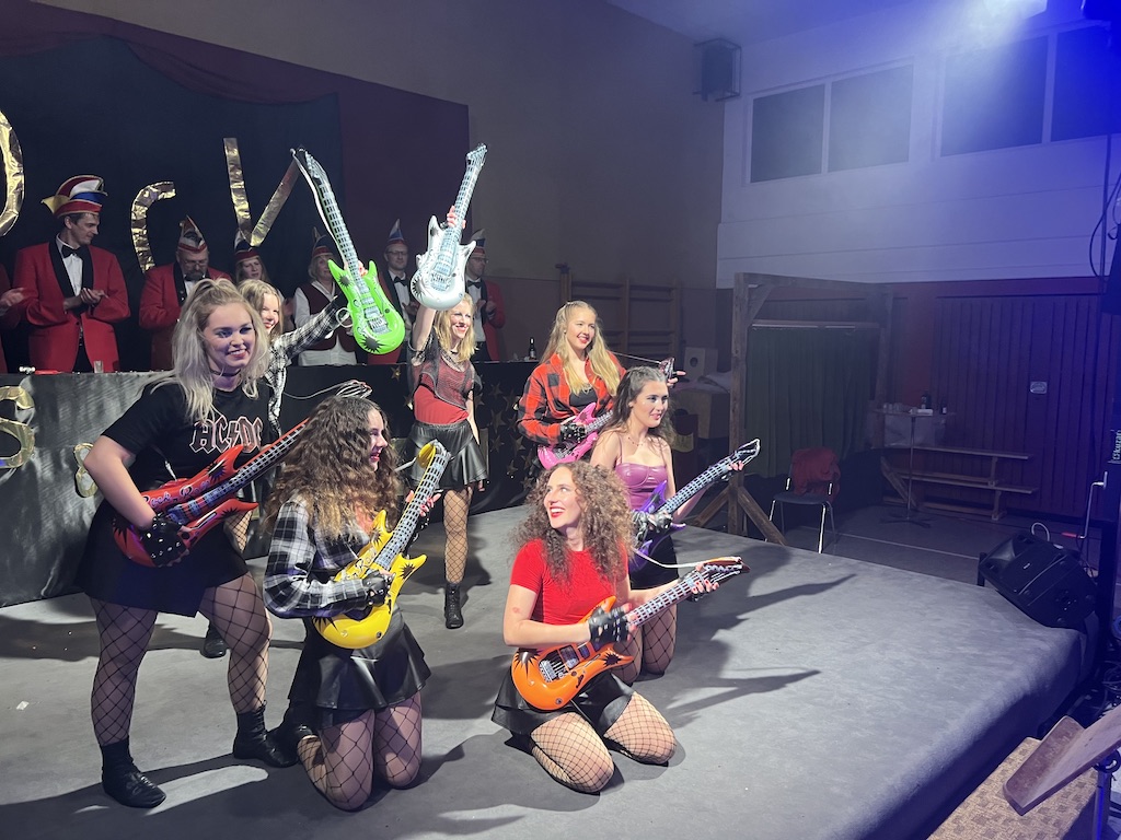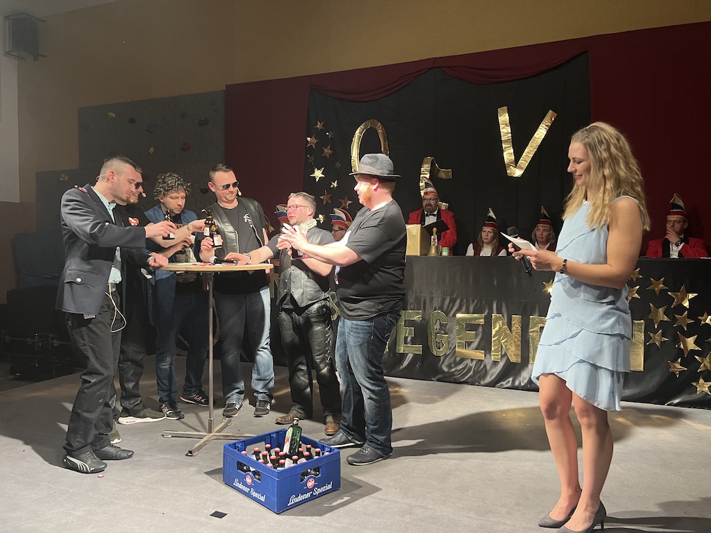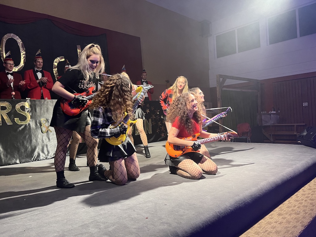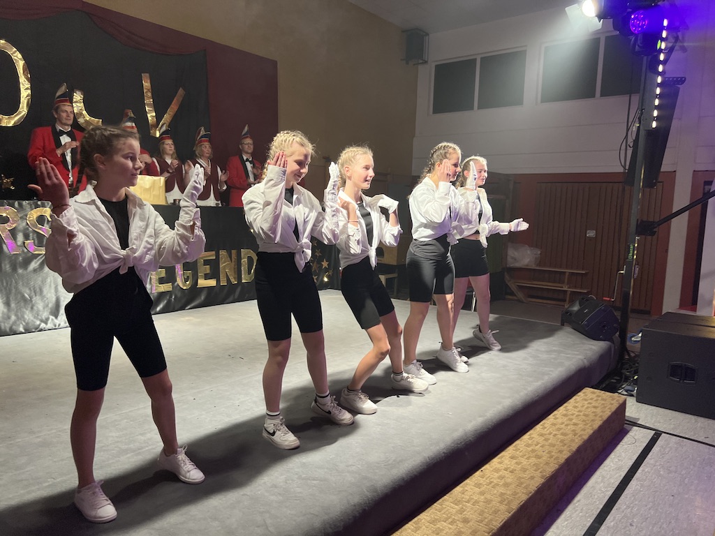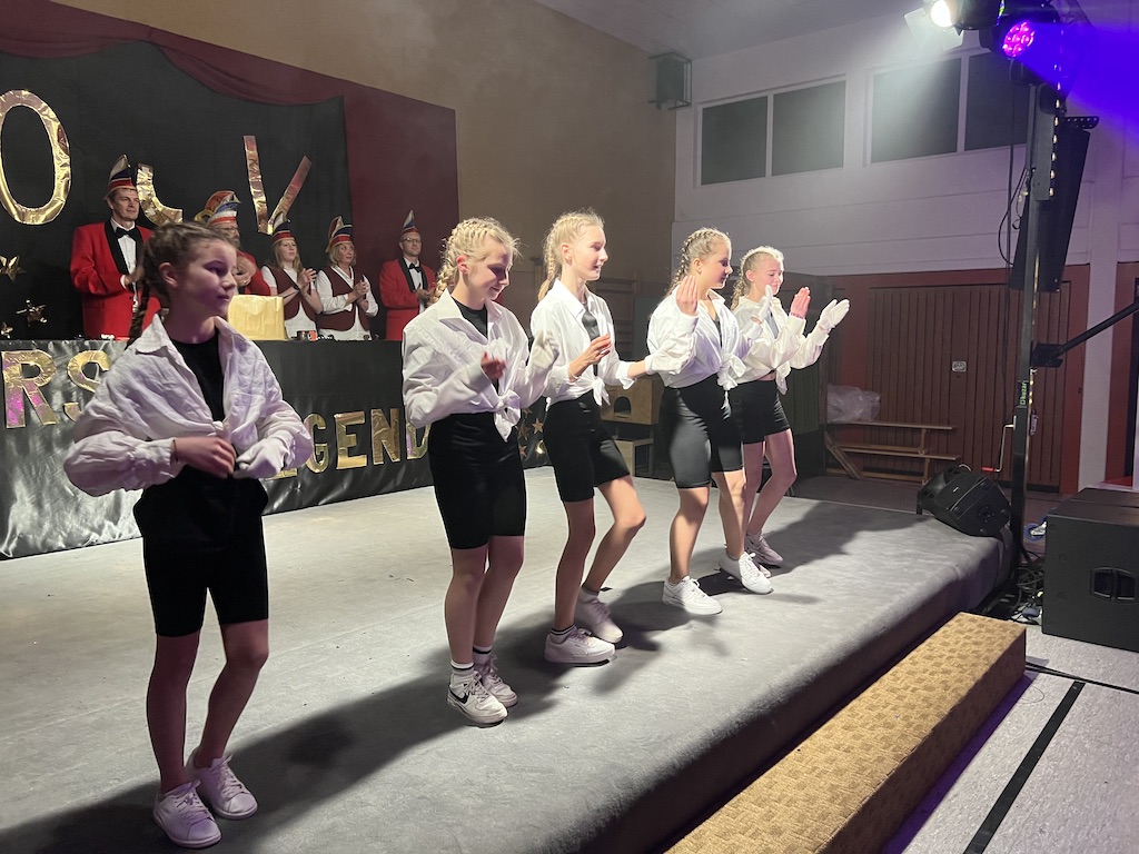 Nichts verlernt in der Pandemie hat die „Garde rot-weiß“, die dort sogar Zuwachs bekommen hat. Unter lautstarkem Jubel zeigte der Gardenachwuchs, dass der OCV für die nächsten Jahre bei den Tanzdarbietungen der Erwachsenen sehr gut aufgestellt sein wird. Direkt nach der abschließenden Pyramide forderten die begeisterten Zuschauer sofort eine Zugabe, die sie natürlich auch bekamen. Im zweiten Teil ihres Auftritts erinnerten die Jatibo’s mit ihrer Hommage an die Rosaroten Panther an längst vergessene Zeiten und wahre Legenden des Ockenser Carnevalvereins. Der Auftritt der Jatibo’s bedeutete aber noch nicht das Ende des Abends. Zum Abschluss sorgte die OCV-Showtanztruppe mit einem Rock-Medley für Jubelstürme in der ganzen Halle. Das OCV-Männerballett und das Finale mit allen Beteiligten auf der Bühne sorgte schließlich für den passenden Abschluss eines unvergesslichen Abends voller Stars und Legenden.