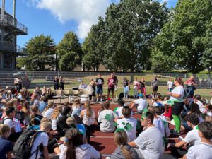 Es wurde der “Mount Kanstein“, ein Mattenberg auf großen Kästen von allen Schülern erklommen, der Hinkelstein von den stärksten Mädchen und Jungen gestoßen, Geschicklichkeit beim “Leitergolf“ oder “Frisbee-Zielwurf“ bewiesen, der Kopf beim “30er-Memory“ eingeschaltet und noch viele weitere Challenges in Gemeinschaft angenommen und gemeistert.