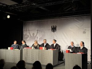 Das Stück selbst forderte Schauspieler wie Publikum gleichermaßen. Zweieinhalb Stunden dauert die fiktive Gerichtsverhandlung um den Kampfjet-Piloten Lars Koch, der ein von Terroristen entführtes Flugzeug abschoss, um 70 000 Stadionbesucher zu retten. Nach den Plädoyers entscheidet das Publikum über Schuld oder Freispruch. Auch in der Premiere sprachen die Zuschauer den Angeklagten frei – wie schon die Schüler aus Holzminden, Salzhemmendorf und dem Solling bei der Schüleraufführung am Nachmittag vor der Premiere.