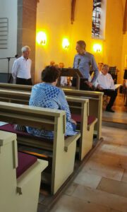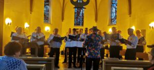 Das Konzert begann schwungvoll mit „Mit freudigem Herzen“ – einem Stück, das Garbe einst aus dem Allgäu mitgebracht hatte. Anschließend präsentierten die Sänger ein abwechslungsreiches Repertoire von insgesamt 15 Liedern. Neben klassischen Männerchorstücken wie „Heimweh“ oder „An der schönen blauen Donau“ erklangen auch humorvolle und moderne Titel. Besonders das augenzwinkernde „Wir sind die alten Säcke“ sorgte für Lacher und Applaus im Publikum. Doch der Chor zeigte, dass er weit mehr kann als Selbstironie. Udo Jürgens’ Evergreen „Mit 66 Jahren“, Peter Alexanders „Die kleine Kneipe“ und das geistliche Lied „Siyahamba – Wir ziehen im Licht des Herrn“ aus Südafrika demonstrierten die Vielseitigkeit und stimmliche Bandbreite der Osterwalder Sänger.