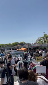 Da wir Wochenende hatten und Tokyo auch für seine Flohmärkte bekannt ist, wollten wir uns das nicht entgehen lassen. Ein großer befindet sich von 9 Uhr bis 14.30 Uhr auf dem „Oi Racecourse“. Dort sind wir dann mit der Bahn hingefahren. Es war super sonnig und heiß. Daher waren wir froh, dass man beim rüber stöbern auch mal im Schatten war. Es hab hauptsächlich Kleidung und Haushaltskram. Aber die Sachen waren alle unglaublich günstig. Für 1.000 Yen, also ca. 6 Euro, konnte man eine ganze Tüte voller Kleidung bekommen. Nachdem wir uns entspannt alles angeschaut hatten, sind wir mit der Bahn weiter in den Stadtteil Harajuku gefahren.