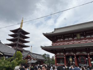 Daher wurde unser erster Stop des Tages Asakusa, weil das eines unserer Lieblings-Viertel war. Wir wollten den Tag unbedingt nochmal zu Ichiran, aber weil es irgendwie nicht so in die Tagesplanung gepasst hat, dachten wir, wir gehen direkt zum Frühstück hin. Gesagt getan. Eigentlich sollte die Filiale erst um 10 Uhr öffnen. Wir waren aber schon um 9.40 Uhr dort und konnten direkt rein und bestellen. In dieser Filiale gab es auch ganz normale Restaurant-Stühle und nicht nur diese typischen Plätze an der „Bar“. Daher setzten wir uns diesmal an so einen Tisch. Da wir ja bereits einige Mal dort waren, hatte ich auch meine perfekte Kombination gefunden und war richtig glücklich. Es war tatsächlich auch gut, dass wir bereits so früh da waren, da der Laden um 10 Uhr bereits voll war und sich eine Schlange gebildet hatte. Ein besonderer Hingucker ist auch immer die Toilette mit den tausend Klopapierrollen. Es hat wie auch zuvor fantastisch geschmeckt und das Gericht ist eines der wenigen, was ich am meisten vermisse. Daher haben wir uns dann auch ein Kit für zuhause mitgenommen, was wir uns noch für einen besonderen Moment aufbewahren.