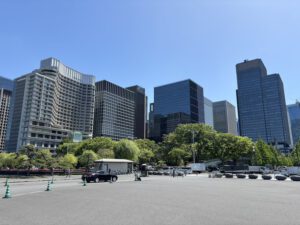 Am Morgen haben wir ein bisschen getrödelt, daher mussten wir uns für den ersten Tagespunkt ein wenig beeilen. Mit der Bahn ging es zum Kaiserpalast in Tokio.