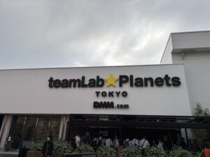 Danach haben wir uns zum ersten Mal an das Busfahren gewagt. Auch das lief reibungslos und ohne Probleme. Unser Ziel waren die teamLab Planets. Zu unserer gebuchten Zeit konnten wir dann auch rein. Vor Ort gibt es vier Welten. Wir entschieden uns zunächst für die Wasser-Welt.