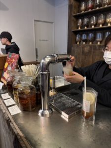 Der erste Stop des Tages war ein bisschen Me-Time ganz alleine für mich: The Head Spa Tokyo. Mein Timeslot begann um 11 Uhr und sollte 90 Minuten andauern. Den Termin muss man im Vorhinein online vereinbaren. Bevor es überhaupt losgeht, wird man in eine Art Kapsel geführt, sodass man gänzlich seine Ruhe hat. Die Tasche kann man in einem Schrank zwischenlagern, sodass man sich keine Gedanken um einen Diebstahl oder Ähnliches machen musste. Nachdem man dann seine Schuhe ausgezogen hatte wurde man zu einem Stuhl geführt. Aus Bequemlichkeitsgründen wurde man zugedeckt und konnte die Klimaanlage zu seinen Bedingungen einstellen lassen. Während man ein Getränk genießen konnte, wurde einiges zu seinen Haaren und der Kopfhaut besprochen. Zunächst einmal ging es um das Ergebnis, welches Programm man wünscht, wie die Haare gestylt werden sollen und welche Extras man sich eventuell wünscht. Dann wurden Fragen gestellt, wie zum Beispiel wie sensibel die Kopfhaut ist, ob man mehr mit fettiger oder trockener Kopfhaut zu kämpfen hat und vieles mehr. Ich habe mich unter anderem für diese Studio entschieden, da alle Angestellten dort englisch sprechen und man so einfach mit ihnen kommunizieren kann.