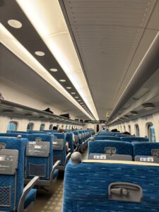 In der Bahnstation konnte ich dann auch meinen letzten Stempel für mein Buch sammeln. Vor Ort mussten wir dann ein wenig warten, da die Züge am frühen Morgen noch nicht allzu regelmäßig fahren. Zwei Stationen später mussten wir umsteigen und das war dann ein bisschen stressig, weil wir nur 10 Minuten hatten, um durch den ganzen Bahnhof zu laufen, da wir ansonsten 45 Minuten hätten warten müssen. Aber es lief dann alles gut und wir haben es geschafft. Nach zwei Stationen sind auch so viele Leute ausgestiegen, dass wir uns mit unserem ganzen Gepäck hinsetzen konnten. Das war auch ganz gut so, weil wir dann bis zum Flughafen Narita über eine Stunde gefahren sind und der Zug am Ende rappelvoll war.
