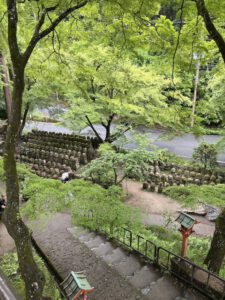 Also sollte es 500 Stufen hoch und wieder runter gehen, die zwischen 5 und 35cm hoch sowie sau rutschig waren und auf denen ein Rinnsal an Wasser hinunterlief. Oben angekommen war es dennoch recht schön. Man konnte unten ins Dorf blicken und die Pagode konnte man selbstverständlich auch gut sehen. Nur der Mount Fuji zeigte sich recht schüchtern und ließ sich nicht blicken.