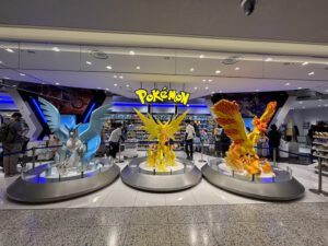 Gegen viertel vor 10 ging es dann mit dem Aufzug nach oben. Da unsere Reservierung erst kurz vor 11 Uhr war, entschieden wir uns dafür zunächst in das Pokemon Center selbst zu gehen. Der Prozess des Anstehens gestaltete sich jedoch noch nie so kompliziert wie hier. Man wurde von einer Reihe in die nächste dirigiert und quetschen war angesagt. Um 10.15 Uhr konnten wir dann endlich ins Center. Wir waren nur an gewissen Dingen interessiert, wie Pokemon Karten, Magnete und Geschirr. Die Auswahl war aber erstaunlich schlecht und so gab es zum Beispiel weder Karten noch Magnete. Dafür, dass um das Anstehen auch so ein Aufruhr gemacht wurde, war es im Laden selber ziemlich unorganisiert und voll. Man konnte sich zum Teil nicht mal auf der Stelle drehen und es war einfach kein schönes Erlebnis.