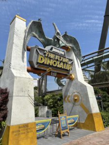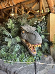 Bevor es zurück zum Hotel gehen sollte, wollten wir noch eine letzte Fahrt machen und da es schon 17 Uhr war, hatten wir nicht mehr allzu lange Zeit. Daher ging es nochmal zu „Jurassic Park – The Ride“. Unser Express-Pass war ja gänzlich ausgeschöpft, daher mussten wir uns ganz normal anstellen. Angegeben waren 75 Minuten, tatsächlich war es dann aber nur eine Stunde. Die letzte Fahrt war genauso toll wie die erste und verlief auch ohne technische Defekte und hat einfach den perfekten Abschluss für den Tag dargestellt.