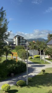 Wir haben uns auf der gesamten Fahrt äußerst sicher gefühlt und benötigten etwa eine Stunde und 45 Minuten. Die Natur und die Städte, durch die wir auf dem Weg gefahren sind, erinnerten an eine Mischung aus Griechenland und Ecuador. Unser Hotel war das Okuma Private Beach & Resort in Kunigami, recht weit im Norden der Insel. Gegen 20 Uhr konnten wir dort dann schnell einchecken und wurden mit einem Golfcar zum Zimmer gefahren.