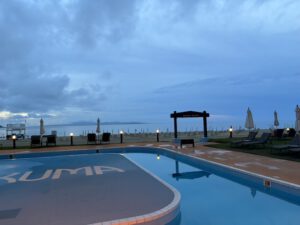 Da meine Begleitung leider kein großer Fan des Strandes ist, wechselten wir zu Liegen am Pool mit Blick aus Meer. Die Poollandschaft bestand aus zwei großen Pools inklusive eines Strudels uns hat bei uns für einiges an Spaß gesorgt. Der Tag verging durch die ständige Abwechslung von Lesen und Schwimmen. Gegen 16 Uhr gingen wir dann langsam zurück zum Zimmer um uns für den Abend fertig zu machen.