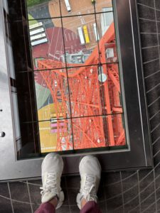 Dort verweilten wir ein wenig, bis es dann wieder zur normalen Plattform ging, die Zeit konnte man sich dort auch selber aussuchen. Da es wieder einen Münzautomaten gab, ließen wir uns auch wieder eine Münze gravieren. Im Souvenirshop konnten wir uns dann unser kostenloses Bild abholen, dass im A6 Format in eine Art Zeitung gefügt wurde und richtig süß aussah. Nachdem wir dort dann noch einen Münzautomaten zum Stanzen fanden, ging es wieder nach draußen.