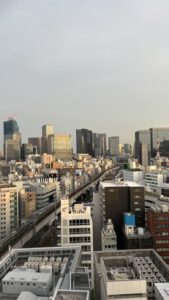 Mit der Bahn ging es dann in die Stadt. Diesmal hatten wir in Tokio kein Airbnb sondern ein Hotel im Viertel Akihabara. Bis dorthin mussten wir nur einmal umsteigen. Es war zwar super warm, aber entgegengesetzt der öffentlichen Meinungen auch kein Problem mit zwei Koffern jeweils. Von der Station sind wir dann schnell zum Hotel Via Inn Akihabara gelaufen und haben eingecheckt. Unser Zimmer lag im 21. Stock und hatte eine fantastische Aussicht. Die Luft war fürchterlich also haben wir das Gepäck nur abgestellt, die Klimaanlage angemacht und sind nochmal raus.