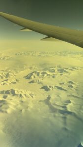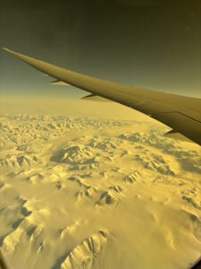 Das Highlight des Fluges war dann eine unglaubliche Kulisse. Aufgrund des anhaltenden Krieges zwischen Russland und der Ukraine wird der russische Luftraum gemieden. Daher sind wir von Japan aus Richtung Nord-Westen zwischen Russland und Alaska durchgeflogen und dann über den Nordpol und Skandinavien nach Frankfurt. Da der Flug tagsüber ging konnte man den Nordpol in seiner ganzen Pracht sehen und das war einfach unglaublich. Diese weitläufige Schneelandschaft mit den Bergen, die so nah wirkten war einfach surreal. Dafür hat sich der 14 stündige Flug absolut gelohnt.