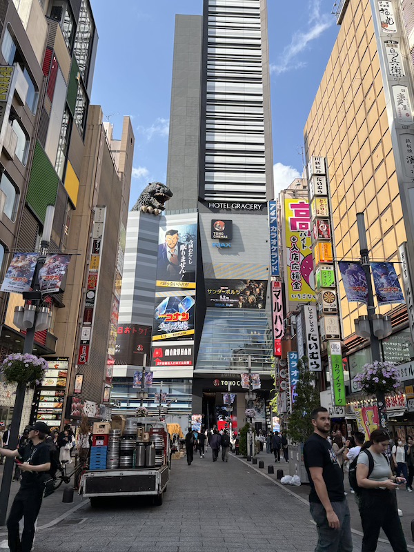 Weiter ging es mit der Bahn Richtung Shinjuku. Im dortigen Disney Store sind wir auf einen ziemlichen kleinen Boba Fett gestoßen und haben uns selbstverständlich die Chance nicht nehmen lassen und ein Bild mit ihm gemacht. Unser nächster Stop war dann der berühmte Godzilla Head. In echt ist er doch ziemlich klein und auf Bildern wirkt es viel spektakulärer, aber ein besonderes Flair bietet das Viertel dennoch.