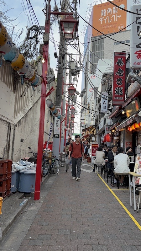 Unser letzter Punkt in dem Viertel war die „Omoide Yokocho“, eine Art Streetfood-Straße. Da wir noch recht satt warten und auch nichts allzu Interessantes gefunden haben, sind wir nur einmal der Straße gefolgt, aber haben uns nichts geholt. Meiner Meinung ist die Straße den Hype nicht wert und wir haben noch viel coolere Ecken gesehen.