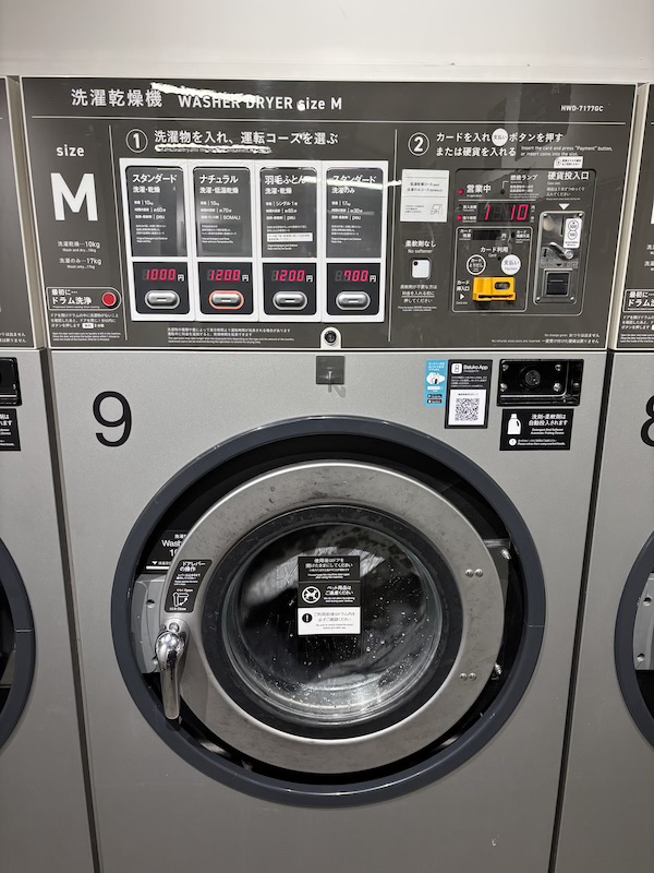 Ich dachte mir, dass wir die Zeit direkt sinnvoll nutzen können und wollte daher Wäsche waschen. Ca. 40m von unserem Zimmer entfernt, war nämlich der Waschsalon. Obwohl ich einen Regenschirm dabei hatte, wurde ich mal wieder ein bisschen nass. Zum Glück musste ich die Wäsche dann nicht holen, als sie fertig war. Da wir im Zimmer so viel Platz hatten, konnten wir die Sachen dann auch sehr gut aufhängen und ich war überglücklich, dass wir endlich das letzte Mal in Japan gewaschen hatten und ich bald endlich meine Waschmaschine wieder hatte.