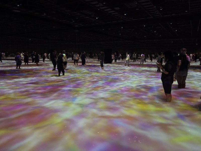 Danach haben wir uns zum ersten Mal an das Busfahren gewagt. Auch das lief reibungslos und ohne Probleme. Unser Ziel waren die teamLab Planets. Zu unserer gebuchten Zeit konnten wir dann auch rein. Vor Ort gibt es vier Welten. Wir entschieden uns zunächst für die Wasser-Welt.