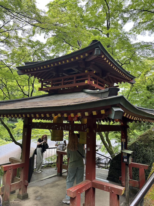 Von dort aus ging es zu Oshino Hakkai, ein Dorf mit vielen Teichen, deren Wasser man nachsagt, dass es einen besonders alt werden lässt. Dies wird wohl auch durch das Alter der Dorfbewohner gestützt. Vor Ort haben wir unsere Mittagspause verbracht und einen kleinen Snack an den Foodtrucks gegessen. Ein Highlight war natürlich wieder eine personalisierte Münze, die wir vor Ort stanzen lassen konnten. Nachdem wir einen kleinen Spaziergang durchs Dorf gemacht haben, ging es zurück zum Bus.