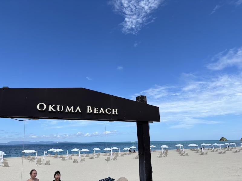 Im Anschluss ging es dann direkt an den Strand für uns. Handtücher gab es so viele wie man wollte vor Ort. Gefühlt war auch gar nichts los, sodass wir freie Wahl bei den Liegen hatten. Im Wasser selbst gab es super viele Korallen und es war eine schöne Abkühlung. Ganz so blau wie das „Hawaii Japans“ wie es angepriesen wurde war es dann doch nicht, aber es konnte sich definitiv sehen lassen.