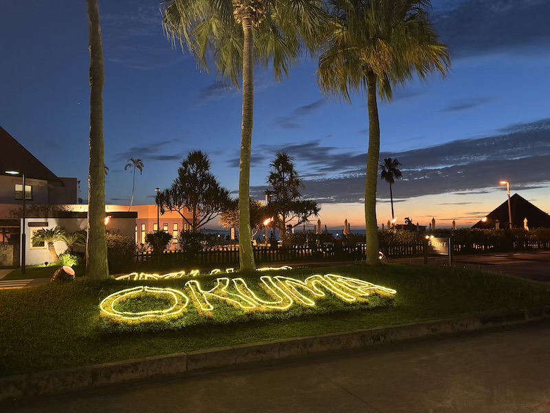 Wir haben uns auf der gesamten Fahrt äußerst sicher gefühlt und benötigten etwa eine Stunde und 45 Minuten. Die Natur und die Städte, durch die wir auf dem Weg gefahren sind, erinnerten an eine Mischung aus Griechenland und Ecuador. Unser Hotel war das Okuma Private Beach & Resort in Kunigami, recht weit im Norden der Insel. Gegen 20 Uhr konnten wir dort dann schnell einchecken und wurden mit einem Golfcar zum Zimmer gefahren.