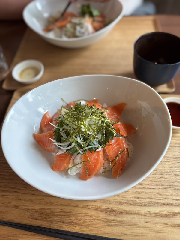 Danach sollte es für uns zum Tokio Tower gehen. Auf dem Weg dorthin kamen wir an einem kleinen süßen Laden vorbei und wir entschieden uns dafür dort Mittag zu essen. Der Laden hieß „Osteria Café Niche“ und wir hatten jeder eine Lachsbowl inklusive Miso-Suppe für nur 1.000 Yen, was richtig lecker und ein guter Deal war.