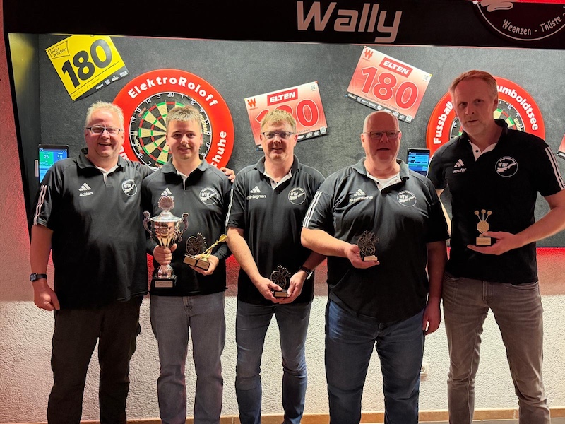 Weenzen/Thüste (gök). Wenn sich im Vereinsheim – dem Wally Pally – des SV Weenzen-Thüste-Wallensen (WTW) die Pfeile fliegen, das Lachen laut und das Vesper reichhaltig ist, dann weiß man: Es ist wieder Zeit für die WTW-Vereinsmeisterschaft im Dart. Bereits zum zwölften Mal traf sich die gesellige Runde rund um Spartenleiter Andreas Langer, um ihren Vereinsmeister zu küren. In diesem Jahr gab es gleich mehrere Geschichten, die man so schnell nicht vergisst.