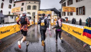 Am „Ruhetag“ ging es dennoch nicht locker zu. Die vier Läufer bewältigten eine kompaktere, aber nicht minder steile Etappe mit neun Kilometern und 1 150 Höhenmetern im Aufstieg. Der Rückweg ins Tal per Gondel fühlte sich fast luxuriös an. Der fünfte Tag wurde wetterbedingt verkürzt. Starker Regen und eisiger Wind ließen den Veranstalter die Route drastisch anpassen. Auf „nur“ 15 Kilometern durch den Regen liefen sich die vier dennoch wieder frei – und genossen an der Verpflegungsstation eine kulinarische Kuriosität aus Donut, Kürbissuppe, Erdbeersahnekuchen und Bier.