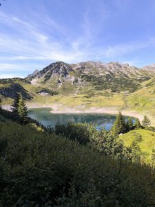 Am sechsten Tag kehrte das Kaiserwetter zurück. Sonnenschein, 18 Grad und beeindruckende Panoramen entlang des Schweizer Nationalparks motivierten das Team, auch wenn die Strapazen langsam spürbar wurden. Doch alle erreichten das Tagesziel in Scuol innerhalb der Zeitgrenze. Dann kam der große Finaltag mit 38 Kilometern, über 2 400 Höhenmeter im Anstieg und eine Route, die teilweise bis auf knapp 3 000 Meter Höhe führte. Im alpinen Gelände war sogar Klettern gefragt. Die Belohnung war dann ein spektakulärer Ausblick über den Reschensee in Italien und der unbeschreibliche Moment, nach sieben Tagen, über 47 Stunden Laufzeit und unzähligen Höhenmetern, das Ziel zu erreichen.