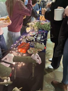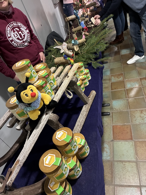 Besonders beliebt waren die zahlreichen kreativen und kulinarischen Angebote, die von Schülerinnen und Schülern vorbereitet worden waren. Kinder standen fröhlich Schlange beim Kinderschminken, während andere sich über Zuckerwatte, Kinderpunsch oder einen frisch zubereiteten Crêpe freuten. Eine Mutter einer fünfköpfigen Familie brachte die erfreuliche Preisgestaltung der Stände mit einem Lächeln auf den Punkt: „Hier kann sich zumindest die ganze Familie ein Crêpe leisten.“ Neben dem süßen Angebot fanden sich auch herzhafte und handwerkliche Attraktionen wie Holzschnittarbeiten, dekorative Handwerke und unterschiedlichste selbst gebastelte Artikel, die mit viel Liebe zum Detail hergestellt worden waren. Besonders die selbst gemachte Weihnachtsdeko fand großen Anklang und wurde vielfach als kleines Geschenk oder als Dekoration für die Adventszeit mit nach Hause genommen. Der 12 Jahrgang verkaufte Kaffee und Kuchen in der Cafeteria.