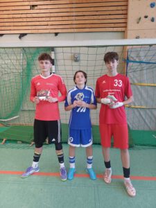 Foto001: Iosua Racu (Schiller) Bester Torschütze, Oliver Stanislawek (KGS) Bester Spieler, Jannes Rehberg (KGS) Bester Torhüter