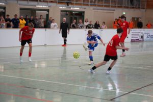 Im mit Spannung erwarteten Finale der beiden besten Teams des Turnieres zwischen der KGS Salzhemmendorf und dem Gymnasium Alfeld führte der zweite Angriff der Alfelder Gymnasiasten durch Damian Dill zur frühen 1:0-Führung. Die KGSler schüttelten sich jedoch nur kurz, spielten ruhig weiter und dann hatte der zuvor noch zurückhaltend agierende Achtklässler Oliver Stanislawek seinen großen Auftritt: Binnen vier Minuten erzielte der talentierte Linksfüßer mit drei wunderschönen Treffern einen lupenreinen Hattrick zur 3:1-Führung der Gastgeber. Als dann der umtriebige Wirbelwind Giovanni Brunstermann noch das 4:1 nachlegte, war die Messe gelesen. Zwar konnte Jorris Richter für die Leinestädter noch zum 2:4 verkürzen, doch Sekunden später ging der Schlusspfiff im kollektiven Jubelsturm unter – die KGS hat den Cup nach sieben langen Jahren wieder nach Hause geholt! KGS-Chef-Coach Daniel `Franz` Schaper konnte den KGS-Christmas-Cup, nachdem er 2005 als Torjäger der Wilhelm-Raabe-Realschule erfolgreich war, nun 20 Jahre später auch als Trainer gewinnen!