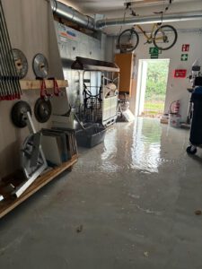 Am Folgetag kam die Coppenbrügger Ortsfeuerwehr erneut zum Einsatz. Bei einem Wasserrohrbruch vermutlich ausgelöst durch einen Frostschaden mussten die Coppenbrügger rund 450 Quadratmeter einer Tischlerei von Wasser befreien. Der Wasserrohrbruch befand sich in der Decke über der Tischlerei und das Wasser lief an diversen Stellen aus der Decke und verteilte sich über die Maschinen und Werkzeuge der Tischlerei. Nach Rücksprache mit dem Eigentümer wurde ein Loch in den Estrich geschlagen. Hier konnte dann eine Tauchpumpe sowie auch eine Wasserstrahlpumpe in den Einsatz gebracht werden, wodurch der Einsatz nach zwei Stunden ein Ende fand.