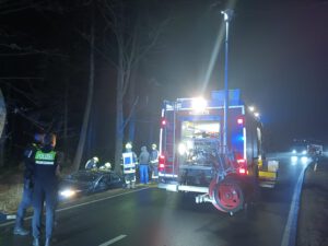 Zunächst wurden die Einsatzkräfte aus Dörpe und Coppenbrügge auf die Verbindungsstraße zwischen Dörpe und Eldagsen gerufen. Dort war ein Autofahrer mit seinem Fahrzeug alleinbeteiligt von der Fahrbahn abgekommen und in den Seitenraum gerutscht. Ursache war laut ersten Informationen die extreme Glätte auf dem Streckenabschnitt. Die Feuerwehr sicherte die Unfallstelle umgehend ab. Da sich der Kofferraum des verunfallten Wagens aufgrund der Deformation nicht mehr auf herkömmlichem Wege öffnen ließ, wurde das HLF aus Coppenbrügge nachalarmiert. Mit schwerem Gerät – einem hydraulischen Spreizer – gelang es den Einsatzkräften schließlich, den Kofferraum zu öffnen, um die Batterie abzuklemmen und so die Brandgefahr zu minimieren. Nachdem die Sicherheit am Fahrzeug wiederhergestellt war, wurde die Einsatzstelle der Polizei übergeben. Die verunfallte Person aus dem Fahrzeug wurde zwar von Rettungssanitätern versorgt, musste aber glücklicherweise nicht in ein Krankenhaus mitgenommen werden.