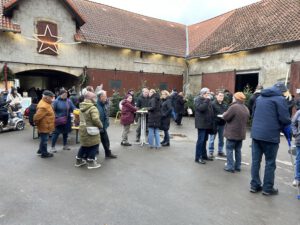 Obwohl der Tag mit Regen begonnen hatte, klarte das Wetter rechtzeitig auf und bescherte den Veranstaltern einen trockenen, gut besuchten Nachmittag und Abend. Für eine stimmungsvolle Kulisse sorgte dabei die liebevolle Beleuchtung von Clemens Henneke, die den Hof Gülke in warmes Licht tauchte. Der Musikzug der Feuerwehr Wallensen begleitete den Nachmittag musikalisch und trug zur vorweihnachtlichen Atmosphäre bei. Ein besonderer Höhepunkt für die jüngsten Gäste war der Nikolaus, der sich viel Zeit nahm, mit den Kindern sprach und kleine Geschenke verteilte.