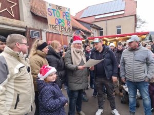 Das kulinarische Angebot traf genau den Geschmack der Besucher. Besonders beliebt war die große Grünkohlpfanne, die ebenso wie Kaffee und Kuchen reißenden Absatz fand. Letzteren hatten die Reiterdamen des Hofes bereitgestellt – am Ende war wirklich jedes Stück Kuchen verkauft. Auch der Hofladen Stichnothe aus Wallensen war mit einem umfangreichen Sortiment an regionalen Spezialitäten und Geschenkartikeln vertreten und wurde von den Gästen sehr gut angenommen. Unerwartet erfolgreich lief zudem der Weihnachtsbaumverkauf, der den Verein positiv überraschte. Für einen besonders herzlichen Moment sorgte der Auftritt von rund 30 Kindern der örtlichen Kindertagesstätte Stoppelhopser, die Weihnachtslieder sangen und damit ihre Wette mit dem Kulturförderverein einlösten. Wie versprochen überreichte der Verein der Kita dafür 250 Euro – ein Geschenk, das nicht nur im Portemonnaie, sondern auch im Herzen ankam.