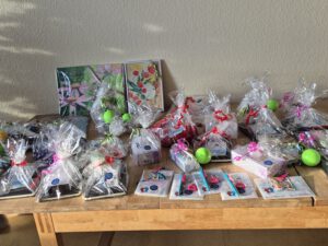 Auf den Fotos zu sehen: Teilnehmer*innen und Preise beim Bingo