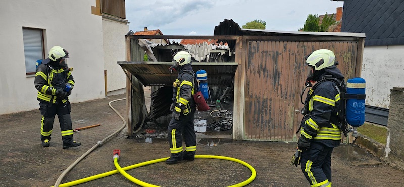 Foto7950: Ein Garagenvollbrand forderte die Feuerwehr Duingen 2025 besonders