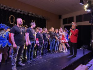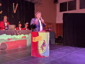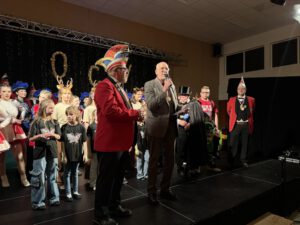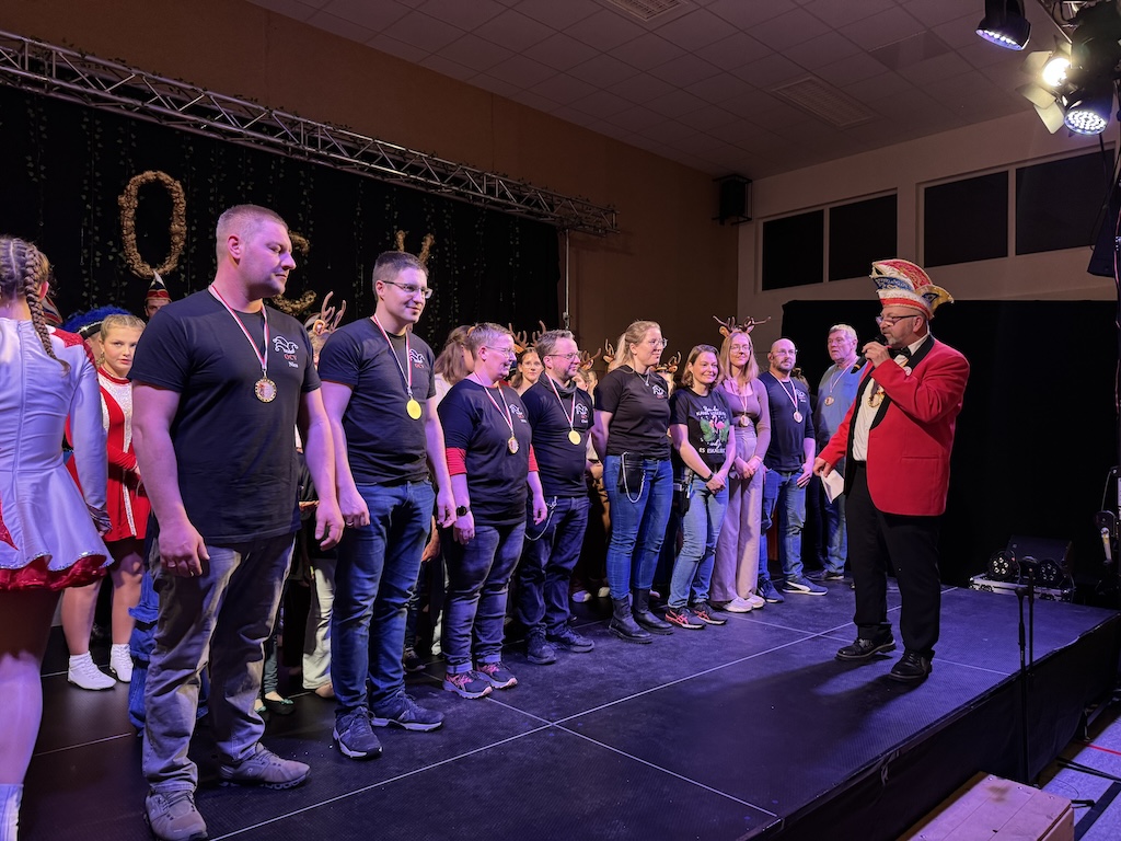 Präsident Hans-Jürgen „Hampi“ Dreier führte gewohnt souverän durch den Abend, während der Elferrat in diesem Jahr ein ganz besonderes Gesicht zeigte. Die Verwaltung des Fleckens Salzhemmendorf hatte das Zepter übernommen. Einziges Manko: Kämmerer Thomas Hölscher fehlte in der Riege. Der Elferrat mit Bürgermeister Clemens Pommerening an der Spitze ließ jedoch charmant durchblicken, dass man die Hoffnung auf seine Teilnahme im nächsten Jahr noch lange nicht begraben habe – die Einladung steht! Auch die Lokalpolitik zeigte sich von ihrer närrischen Seite. Ortsbürgermeister Karl-Heinz Grießner bewies rhetorisches Geschick und lieferte seine Rede klassisch in Reimform ab, was das Publikum mit donnernden „OCV Helau“-Rufen quittierte. Ein emotionaler Moment war die Verleihung des Danke-Pokals an Steffi Färber, die für ihr unermüdliches Engagement hinter den Kulissen geehrt wurde.