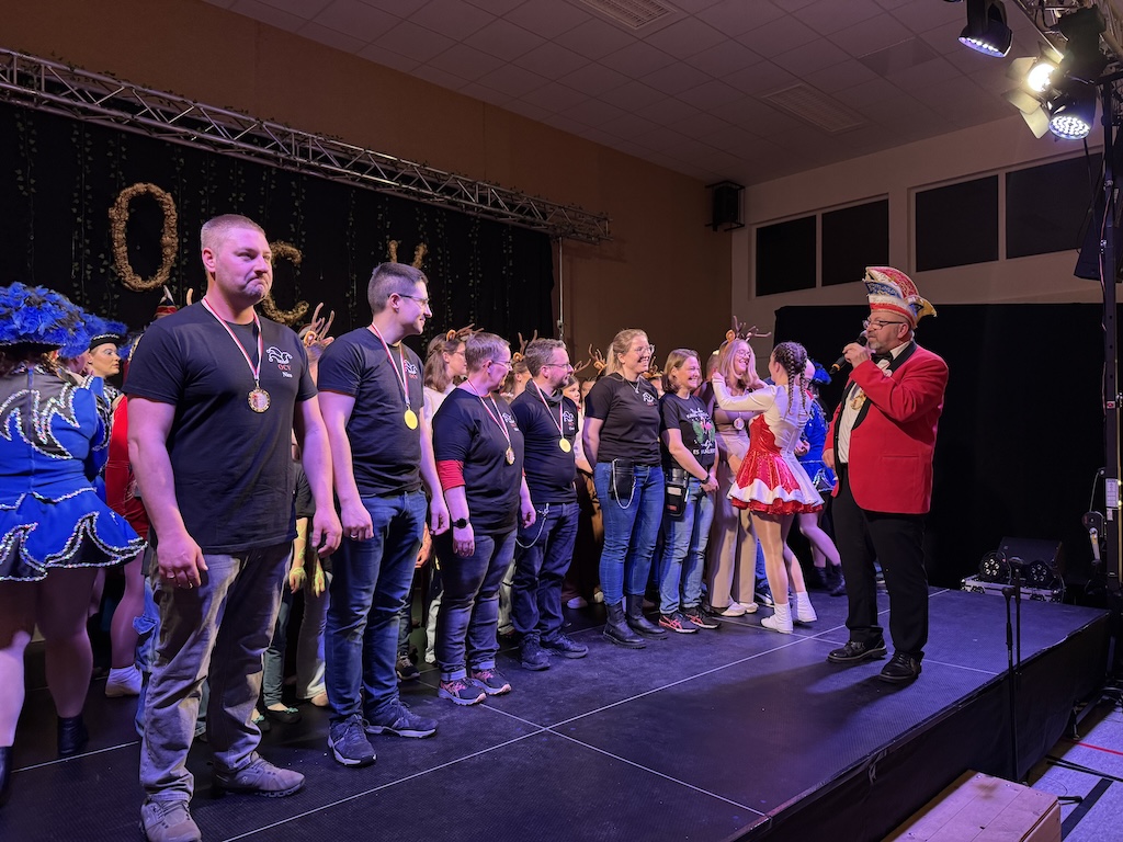 Das Programm startete schwungvoll mit den OCV-Silberfunken, die vor Jahren als OCV-Zwerge begannen und nun im Teenager-Alter als feste Größe auf der Bühne stehen. In der Bütt nahm Hampi Dreier kein Blatt vor den Mund und berichtete von den Eigenheiten der Ockenser über feuchtfröhliche Vatertagswanderungen bis hin zu den gut gehüteten Geheimnissen am Wasserbaum. Zwischen den Redebeiträgen sorgte DJ Mac dafür, dass bei klassischen Karnevalsliedern kräftig geschunkelt wurde. Ein besonderes Highlight für das Herz waren die OCV Minis, die zu den Klängen von Euphoria tanzten und die Halle komplett Kopf stehen ließen. Unterstützung gab es zudem aus der Nachbarschaft: Ein Märchenerzähler aus Lüntorf sorgte nicht nur mit dem Lied vom eisgekühlten Bommerlunder für beste Stimmung und entführte die Gäste zu Ali Baba und seinen 40 Räubern. Dass man sich um die Zukunft des OCV keine Sorgen machen muss, bewiesen auch die OCV Kids mit ihrem sehr gut einstudierten Tanz. Generell ist die Garde deutlich angewachsen und der Nachwuchs bringt sich sogar schon aktiv in die Vorstandsarbeit ein.