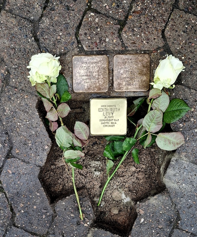 Der Weg des Gedenkens führte weiter nach Coppenbrügge. Dort wurde ein Stolperstein für Ruth Levy verlegt, die nun symbolisch wieder mit ihren Eltern Oscar und Elise vereint ist, deren Gedenksteine bereits zuvor gesetzt worden waren. Ruth Levy, die als Krankenschwester im jüdischen Krankenhaus in Hannover gearbeitet hatte, wurde 1941 gemeinsam mit ihren Eltern in das Ghetto Riga deportiert. Berichte von Überlebenden schildern ihren aufopferungsvollen Dienst unter den unmenschlichen Bedingungen der Sanitätsstation im Ghetto. Wie ihre Eltern kehrte auch Ruth Levy nicht zurück.