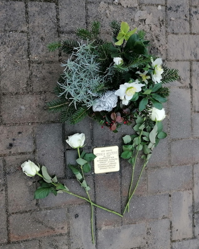 In Ahrenfeld versammelten sich zahlreiche Bürger, Lokalpolitiker und Angehörige vor dem einstigen Wohnhaus von Werner Wolters. Der im Jahr 1938 geborene Junge litt an einer durch Vitamin-D-Mangel verursachten Wachstumsstörung. Was über Jahrzehnte in der Familie als Tod durch eine schwere Krankheit galt, offenbarte sich erst im Jahr 2013 als grausame Gewissheit: Das Kind wurde ein Opfer der nationalsozialistischen Kindereuthanasie. Besonders berührend war der Moment, als Werner Wolters jüngere Schwester, Renate Wippermann, das Wort ergriff, die extra mit ihrer Verlegung mit ihrer Familie angereist war. Ihre Schilderungen machten deutlich, wie tief die Wunden der Vergangenheit noch immer sitzen und wie wichtig die späte Wahrheit für die Familie ist. Der zehn mal zehn Zentimeter große Messingstein vor dem Haus erinnert nun dauerhaft daran, dass Werner Wolters am 15. Januar 1942 in der Kinderfachabteilung der Heilanstalt Lüneburg ermordet wurde.