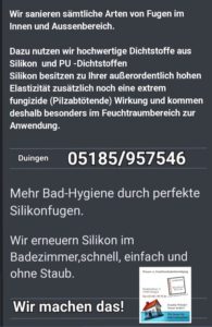 Dass diese Kombination aus handwerklichem Allrounder-Wissen und spezialisiertem Fachwissen zum Erfolg führt, zeigen die zahlreichen positiven Rückmeldungen. Ein Beispiel für die nachhaltige Arbeit des Betriebs ist die Familie Brockmeyer aus Banteln. Michael Kliem behob dort erfolgreich weitreichende Feuchteschäden und übernahm im Anschluss auch die kompletten Fliesen- und Bodenarbeiten. Die Familie zeigt sich äußerst zufrieden. „Die Arbeiten wurden fachgerecht und zu unserer vollsten Zufriedenheit ausgeführt“, ist Beate Brockmeyer vom Ergebnis begeistert. Michael Kliem handelt bei all seinen Arbeiten nach seinem Motto: „Feuchte Wände, nasser Keller? Wir lassen Sie nicht untergehen!“ Kontaktaufnahme ist möglich unter Tel 05185-957546.
