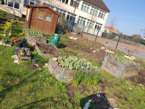 Grundschulkinder bringen den Frühling vor die Haustür