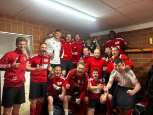 Foto: Nach dem Auswärtssieg war die Stimmung in der Kabine bestens
